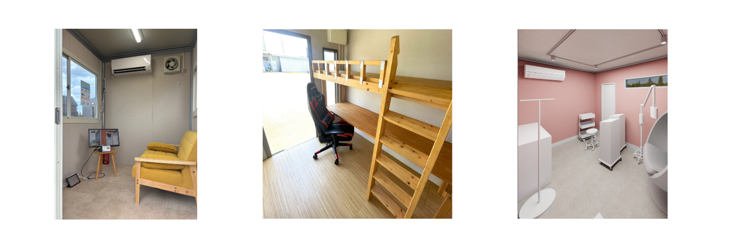 さらに、用途に応じた内装レイアウトや設備のカスタマイズにも対応でき、トイレ・休憩所・喫煙所・事業用スペースなど、