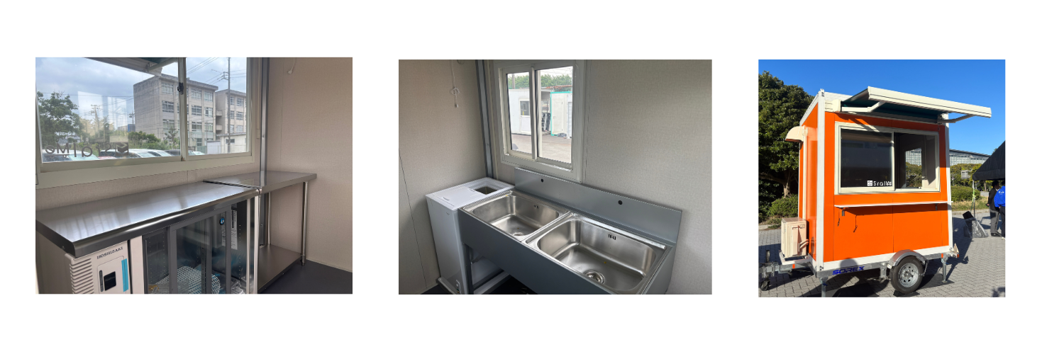 P0型トレーラーハウスは、キッチンカー仕様として飲食関連の事業に活用されるケースもあります。