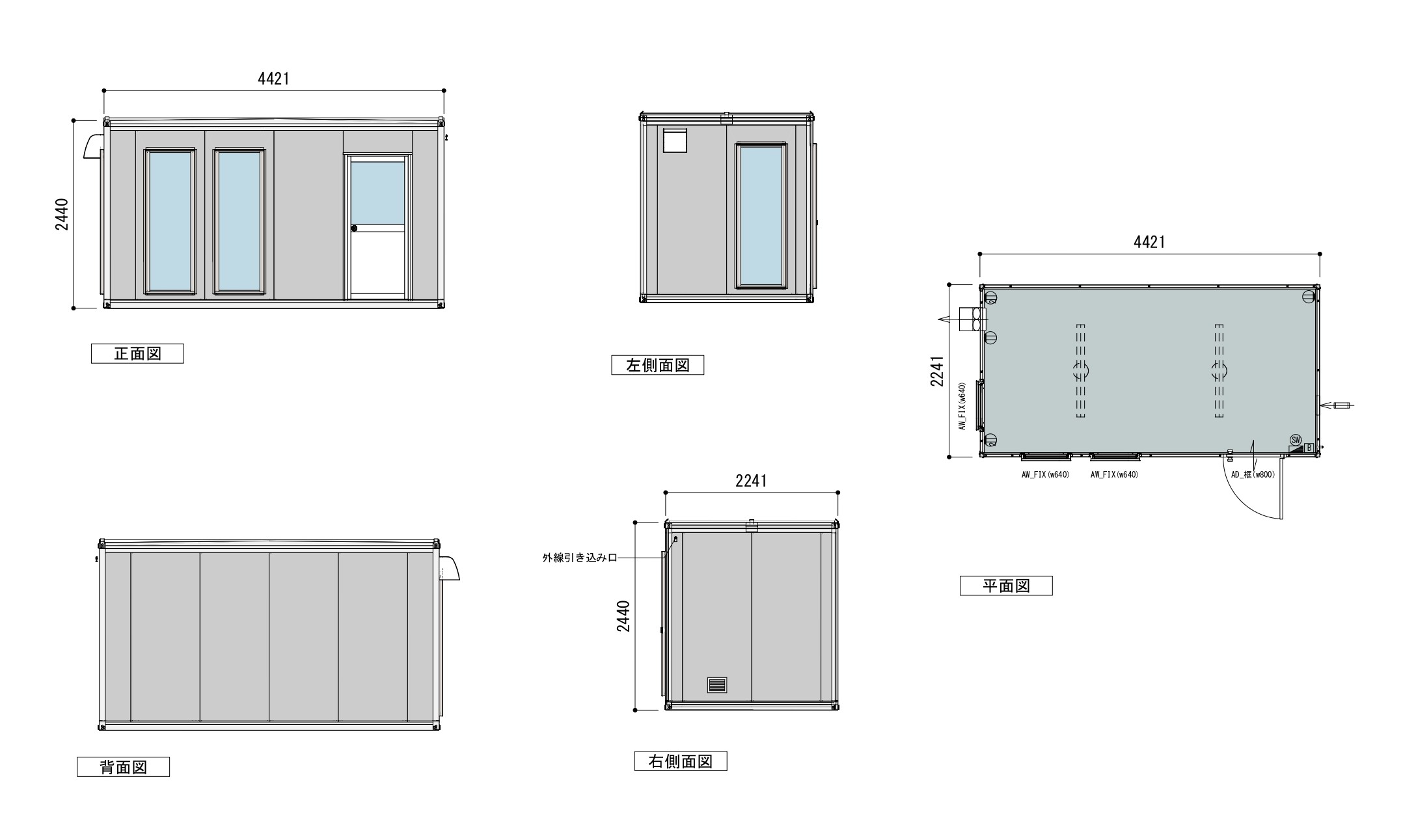ハウスのサイズはW:4421 D:2241 H:2440