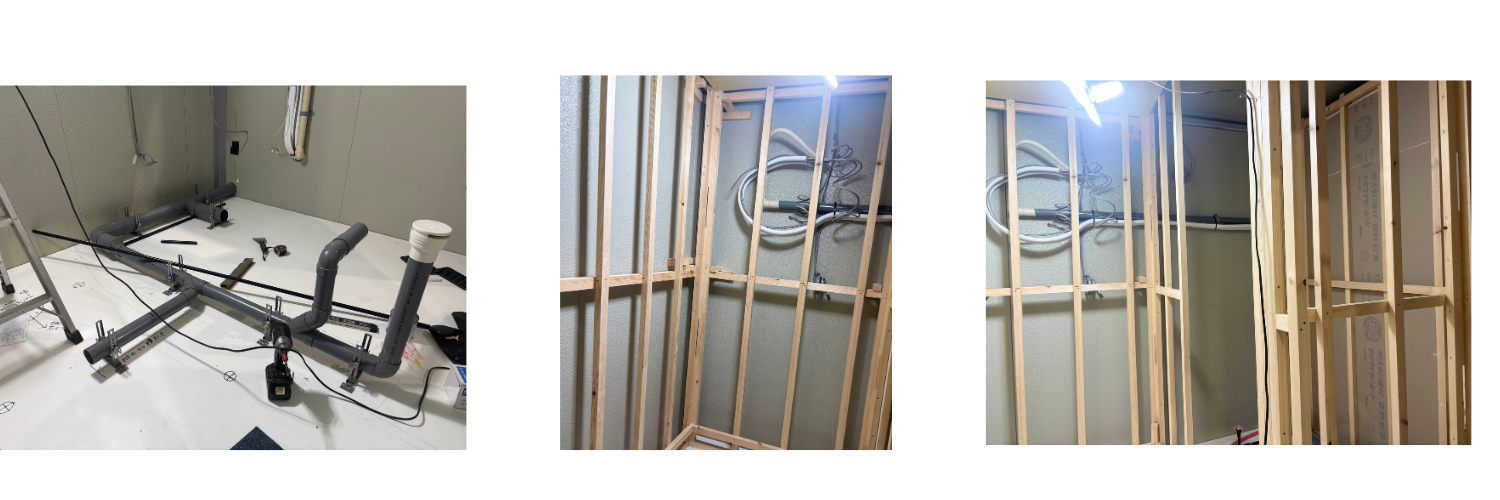 給排水の配管・電気配線などは写真のようにハウス内に組み込みます。
