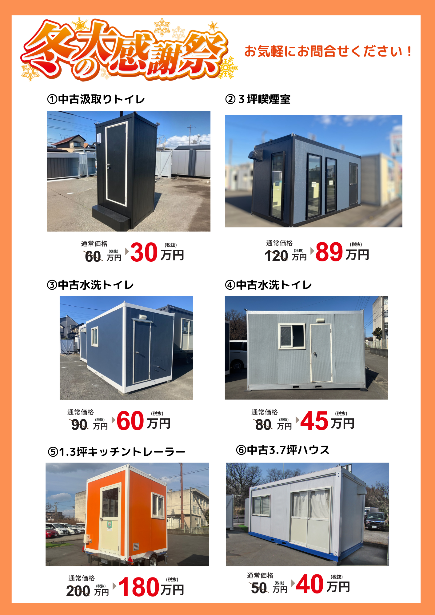 ユニットハウス、トレーラーハウス、シャッターハウス、中古ユニットハウスなど幅広く取り揃えております。